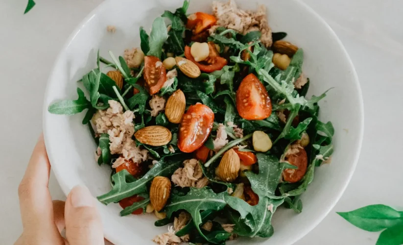 • Soak chopped onions in water: Place the chopped onions in a small bowl of water. This will help take the edge off the onions. Let sit while you prepare the rest of the salad.